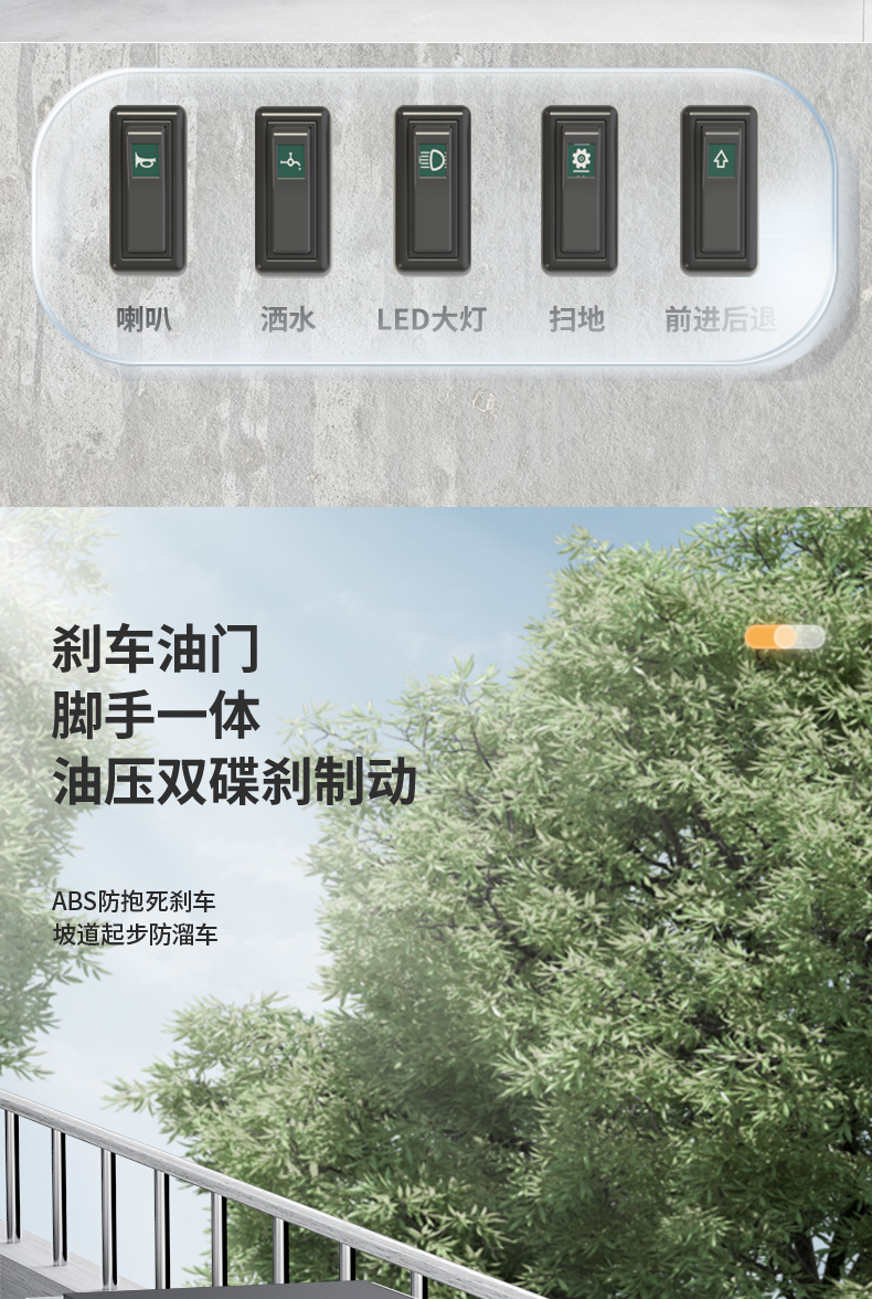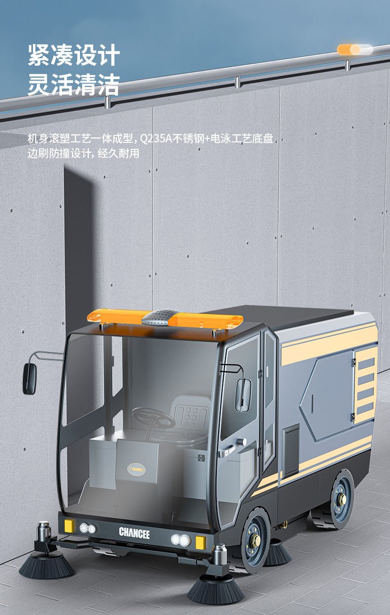 橙犀U220C 駕駛式掃地機:橙犀駕駛式掃地機,全封閉模式可以抵抗惡劣天氣,大寬幅主刷首創六面體主刷鏈接,使用壽命提升18%,+500mm四邊刷清潔效果大幅度提升,清潔更高效快捷。