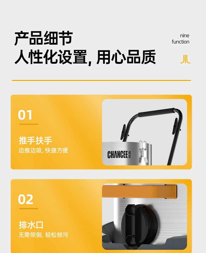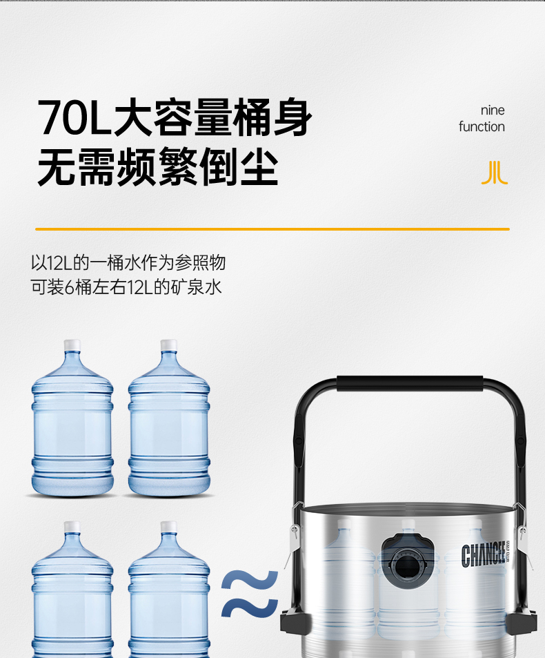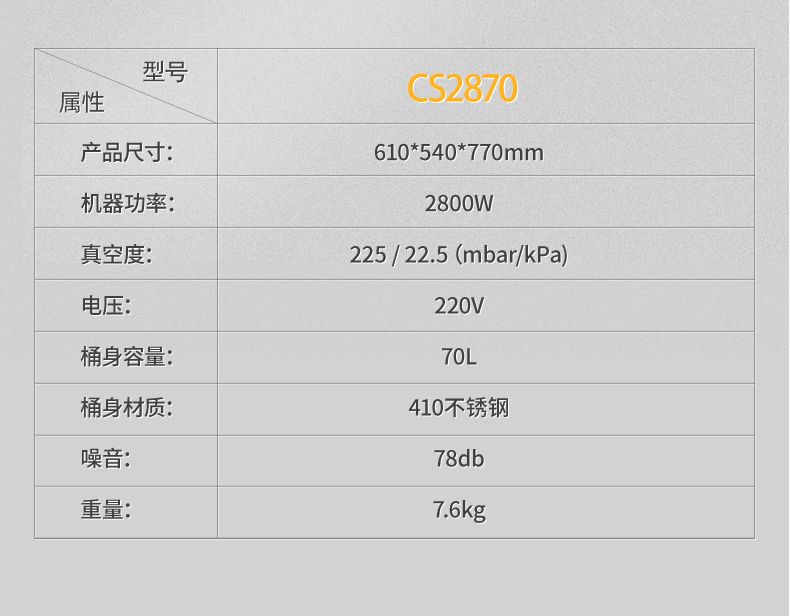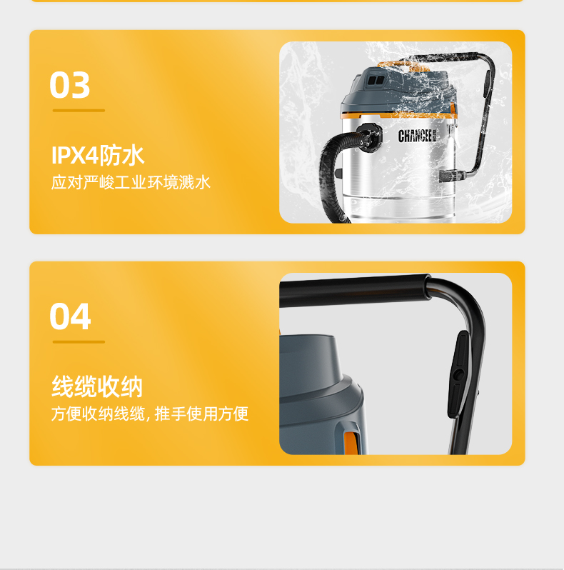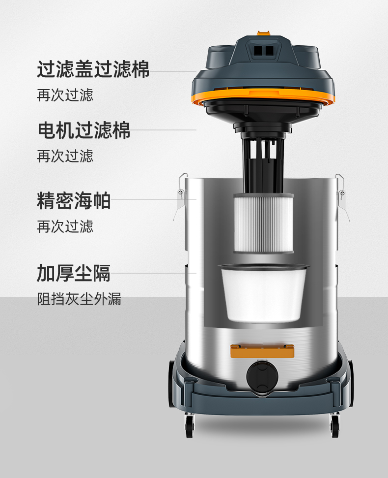 橙犀吸塵器 CS-2870:2800w打容量,商用超大吸力,多層過濾系統,智能泄壓閥,可以干濕兩用,臟污一機搞定,高效強勁大功率電機,配置抗扭軟管,不變形可以反復伸縮